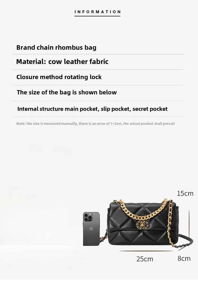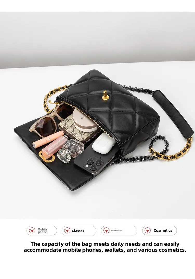 2025 new cloud bag, small fragrant wind diamond grid chain bag, genuine leather women's bag, single shoulder crossbody bag